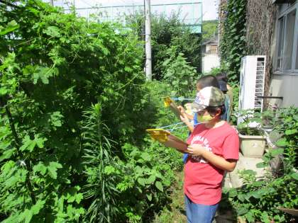 夏の生き物とツルレイシの成長を観察しに行きました。