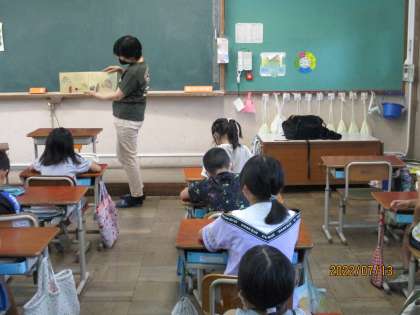 朝読書の時間に、読み聞かせに来ていただきました。みんな熱心に聞いていました。