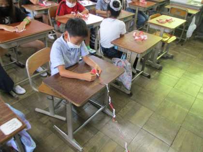 8月25日 4年生 〜折り紙の長さ比べ〜