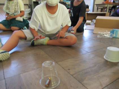 特に、カップに乾電池を入れて転がした時の動きがお気に入りの子どもたちが多かったようです。