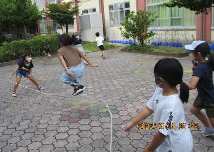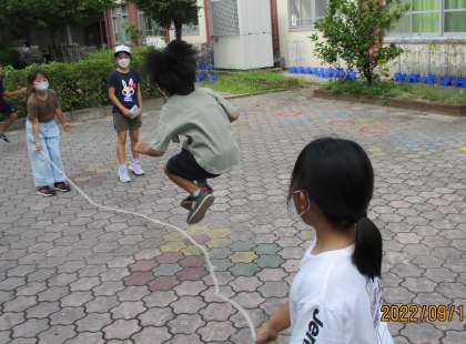 第1回スポーツチャレンジ大会に向けて休み時間に練習を頑張っています。少しずつ連続で跳べるようになってきました。