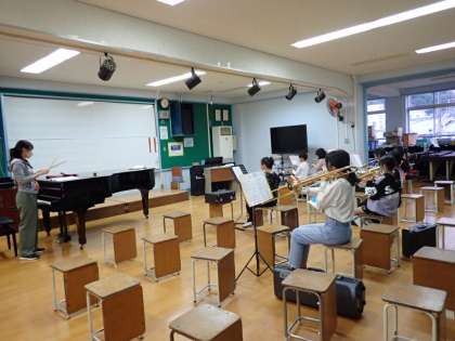 音楽室では、吹奏楽部は合奏の練習をしていました。