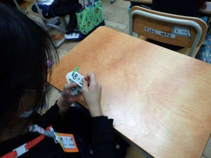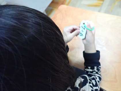 「たしざん(2)」の計算カードをすき間時間に取り組んでいます。