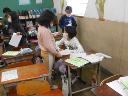 インタビューをした内容を友達に伝えました。