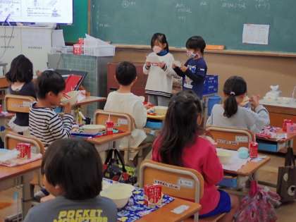 2年生がこんど開いてくれるおもちゃフェスティバルの案内に来てくれました!
