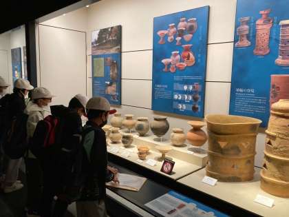 歴史館の展示物に興味津々の子どもたち。来年の社会科の学習まで覚えていてくださいね。
