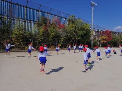 2重跳びに挑戦したり、大縄跳びもしてみました。