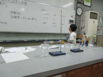 水を温めたり冷やしたりすると体積はどうなるのかを実験で調べました。