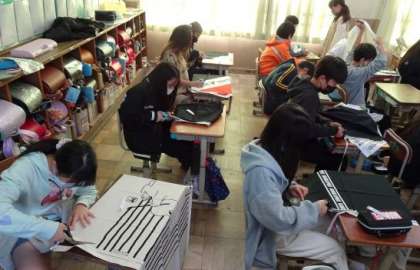 家庭科では、裁縫セットを使いエプロンを作る学習を進めています!