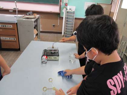 金属を温めたり冷やしたりすると体積はどうなるのかを実験で調べました。