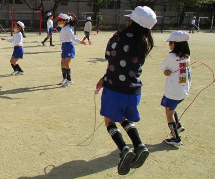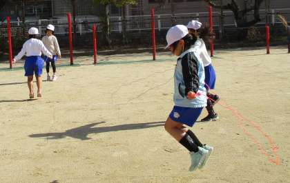 2年生は体育でなわとびをしています。