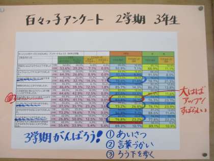 3学期が始まり学校に子どもたちの元気な声が戻ってきました。始業式では、学校長の話を熱心に聞く姿が見られました。2学期の終わりに行った百々っ子アンケートから、「あいさつ」「言葉づかい」「廊下を歩く」ことを頑張っていこうと伝えました。