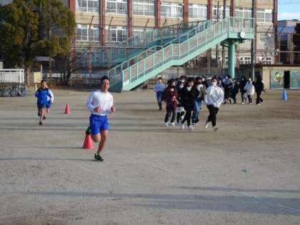 持久走が得意な子もそうでない子も、多くの子ががんばって走り切ろうとしています。