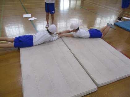 前転がり、後ろ転がり、丸太転がり、ゆりかごタッチなど、
