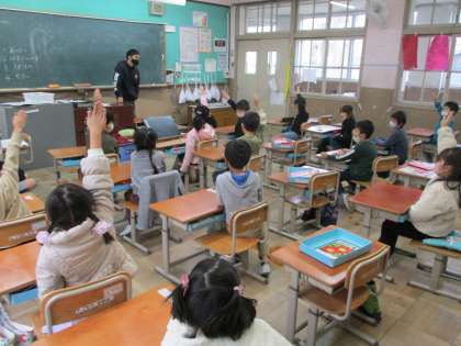 3時間目に一年生の教室にお邪魔しました!子どもたちはとても楽しそうに遊んでいました!