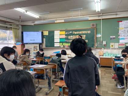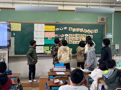 5年生の食の指導も3回目になりました。今回は主食・主菜・副菜についてです。「これは主菜かな?」と黒板の上で分類しながら学習しました。