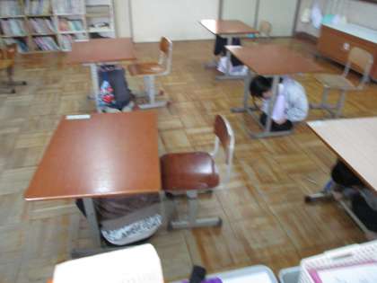 シェイクアウト訓練がありました。放送をしっかり聞いて動くことができました。
