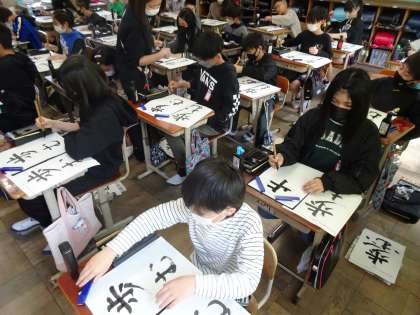 半紙に対して、文字の大きさと配列に気をつけて、「歩み」という字を書きました!