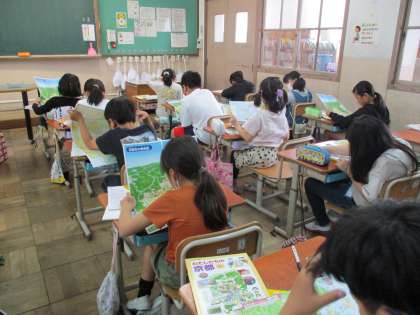 初めての社会科の授業では、地図帳に夢中な様子でした。