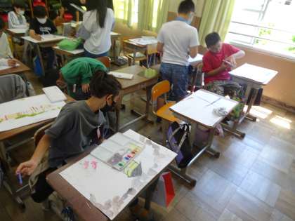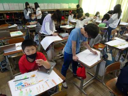 図画工作の学習は「わたしの大切な風景」の作品に取り組んでいます。