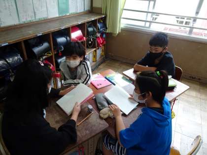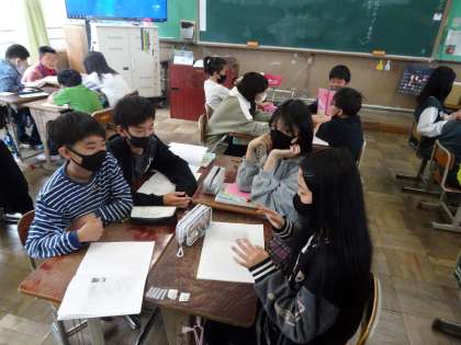 国語の「聞いて、考えを深めよう」の学習で、班で自分の考えを伝えあいました!