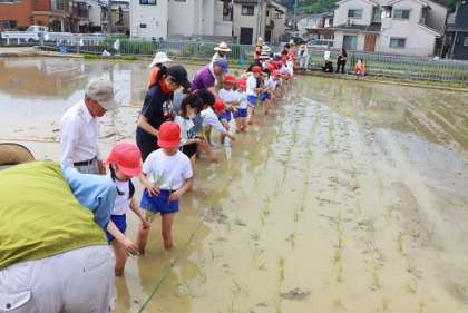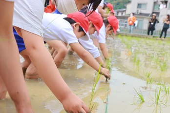 地域・保護者の方々の協力のもと、田植えの体験をしました。
