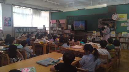 週に1度、図書室に行き、学校司書の先生から読聞かせをしてもらっています。