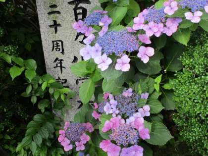 正門を入って左側にきれいな紫陽花が咲いています。微妙に違う色に子どもたちは興味津々で見ていました。
