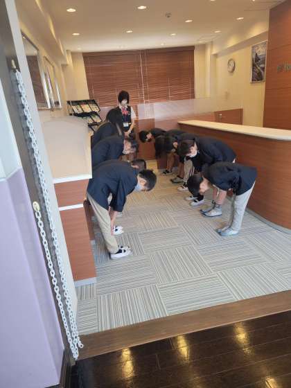 京都銀行では、窓口業務に向けて、あいさつの練習をして、あいさつは言ってから礼をするということを知りました。