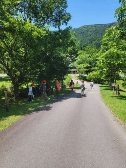 山の家についてさっそく最初の活動です。グループで所内をまわるオリエンテーリングです。ただ、まわるだけでなく、指定された動物や植物などの自然を見つけたり、問題に答えたりしながら、まわります。グループで協力してたくさんまわれるといいですね。