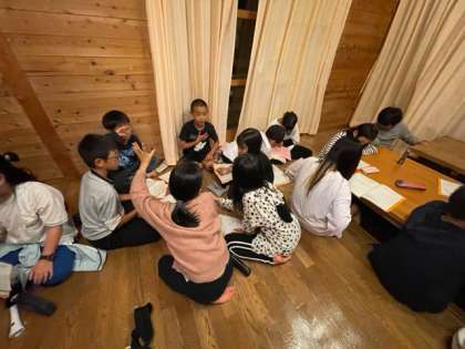 1日目最後の活動です。班別に1日を振り返っています。明日はよりよく活動できること思います!