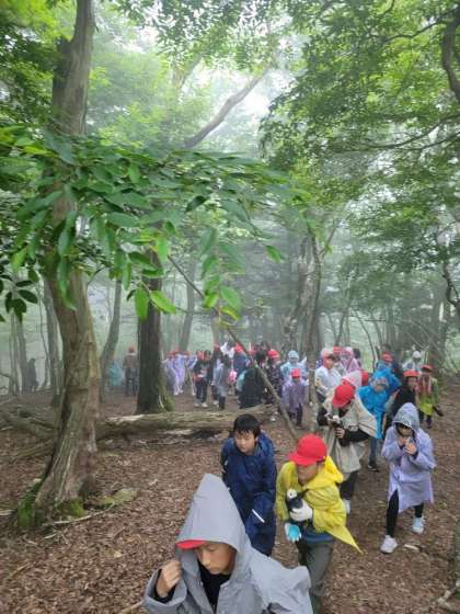 滝谷山の登山口に入りました。ここまできたらあと少しで頂上です。レインコートは着たものの雨はほとんど降っていません。あと少し頑張ろう。