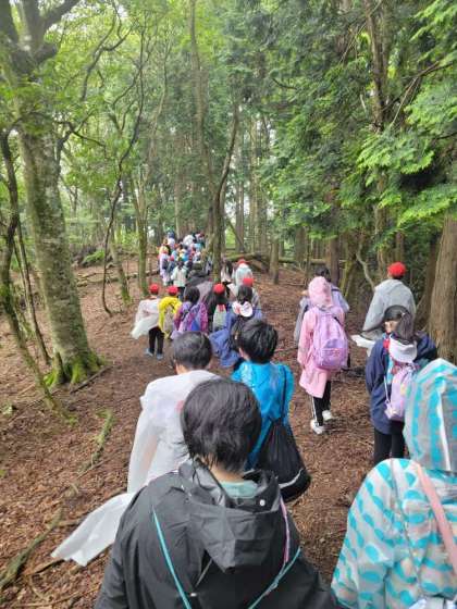 雨が心配されるので予定を変更して、下山してからの昼食です。雨が本格的に降りだすまでにもどれるよう頑張ろう。