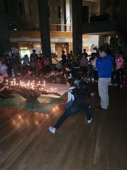 レクリエーション係の色々なポーズを真似して楽しむ「ぴよぴよさん」というゲームです。どんどん難易度が上がっていきますが、みんなしっかり真似してます。