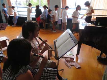 音楽の学習では「静かにねむれ」や夏休みの課題に出ていた曲ができているか確認しました。