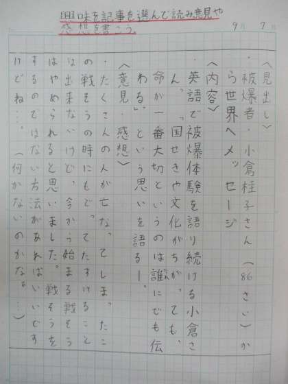 原爆や戦争に関連する記事が目にとまる児童がいました。