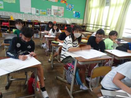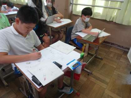 図工の学習「お話の絵」の下書きは、順調に進んでいます!
