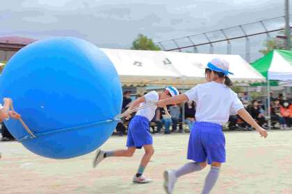 50m走では、ゴールまで一生懸命走り切ることができました。折り返しリレーでは、コーンを素早く回って走ることができました。大玉運びも1年生と力を合わせて大玉を運ぶことができました。