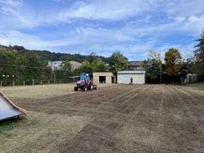 数日で芽が生え、3週間ほどで芝生が使えるくらいまで成長します。それまでは芝生広場が使えない日が続きます。その分、運動場で遊んだり、図書室で本を読んだりして過ごしてほしいと思います。