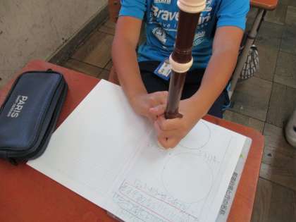 テープの芯やのりのふた、リコーダーなど様々なものをもってきて、