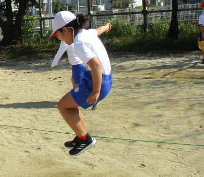 3年生の体育では、「はばとび」を学習しています。