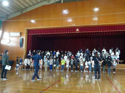 今日の学習発表会の練習は、初めて体育館で行いました。