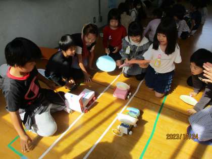今日は、2年生に招待していただいた、「おもちゃランド」に行きました。
