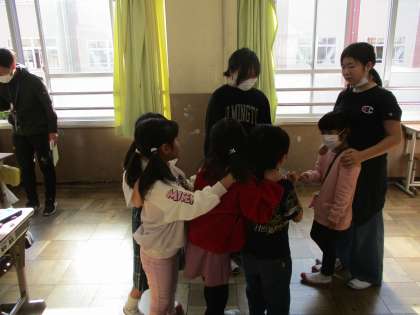 6年生の指示や説明を聞きながら楽しく遊ぶことができました。