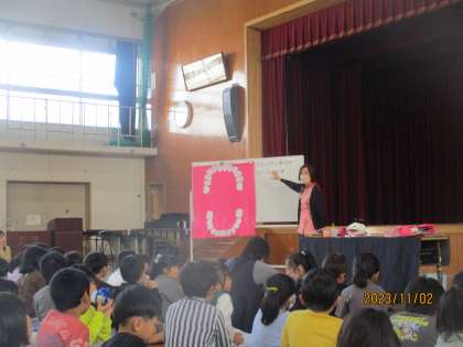 11月1日(水)に歯みがき巡回指導がありました。きれいに歯をみがくにはどうすれば良いかを学習することができました。