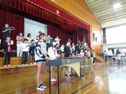 今日の学習発表会の練習は、合唱2曲と合奏1曲を体育館で演奏し、録画したものを教室で見ました。