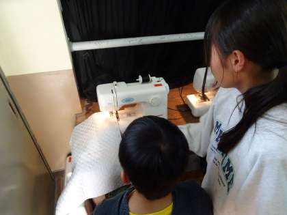 今日はミシンを使って、布を縫いました。