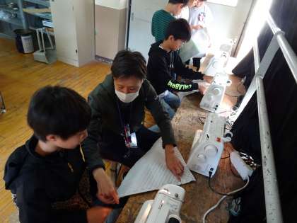 家庭科の時間に、ナップザックを作っています。