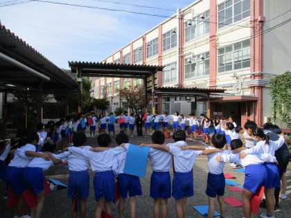 本番前に円陣を組み学年みんなで心を一つに頑張りました。とっても緊張していましたが、これまでの練習の成果を十分に発揮することができました!!