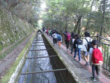 水路閣の上を歩きました。こんな所を水が通っていることにビックリの子ども達でした。